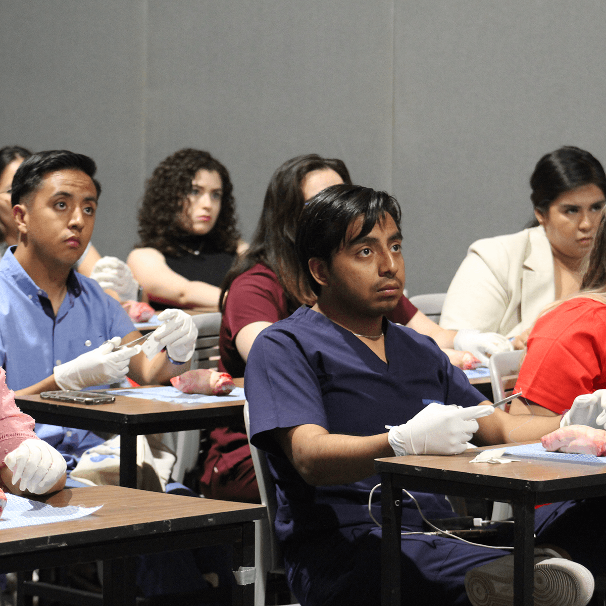 En el Taller de Suturas Avanzado, los participantes tienen la oportunidad de adentrarse en el arte y la precisión de las suturas avanzadas en un ambiente simulado con patas de cerdo.